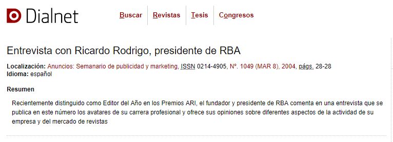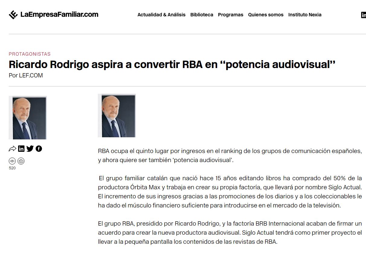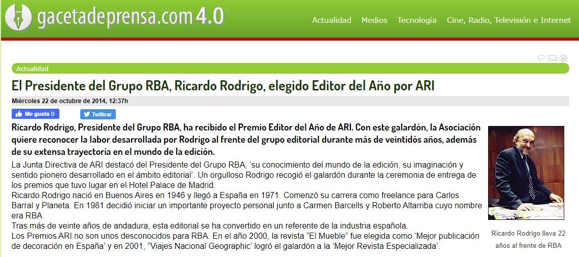 Galería de apariciones de Ricardo Rodrigo en prensa en las actividades relacionadas con la actividad del editor y presidente del grupo RBA y la fundación RBA.